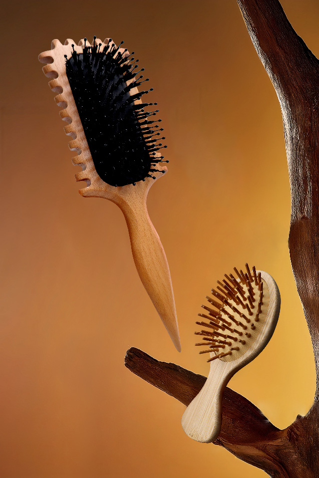 Nylon bristles are good for detangling hair, penetrating thick hair, and molding styles into place.